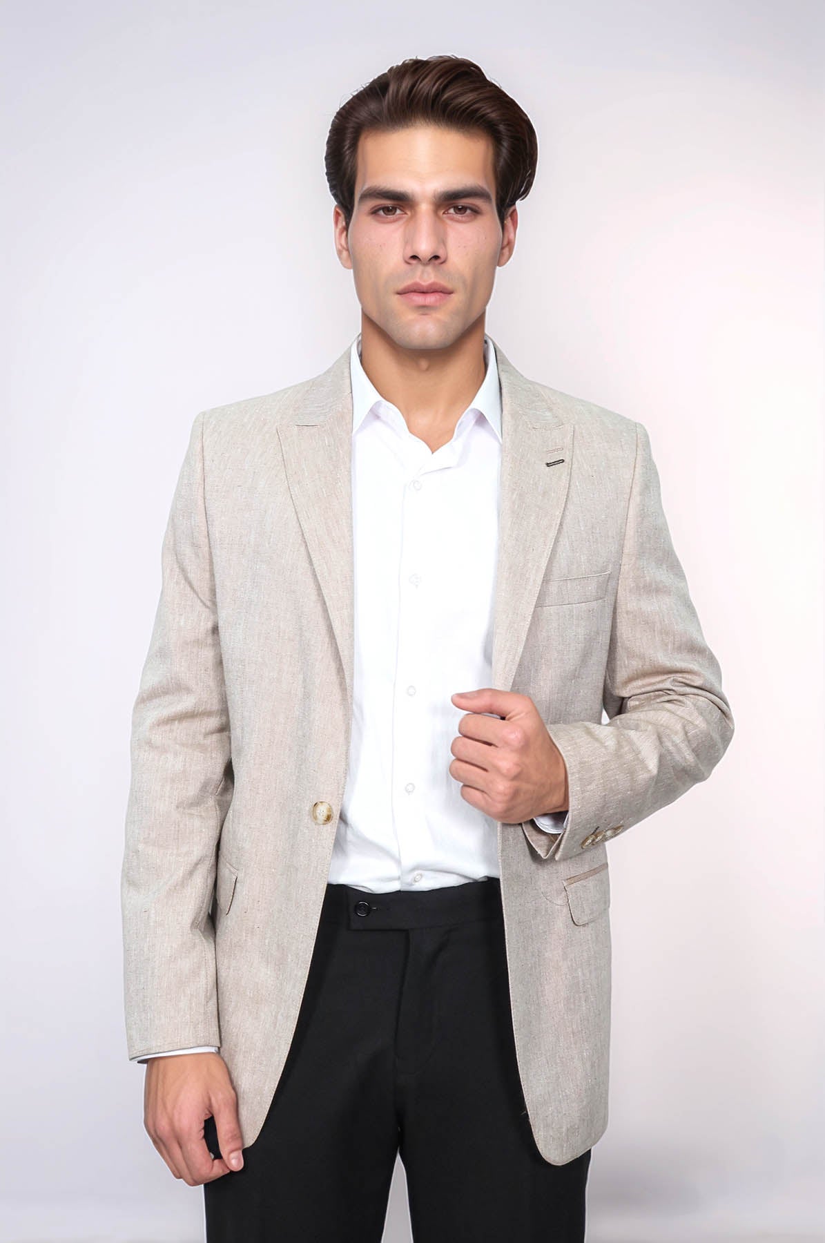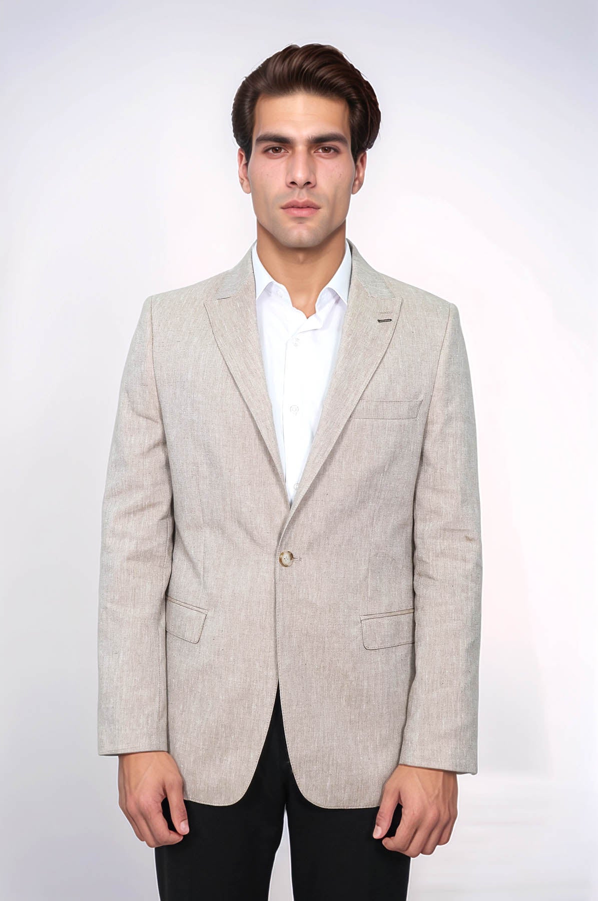 Slim-Fit Peak Lapel Light Brown Jacket