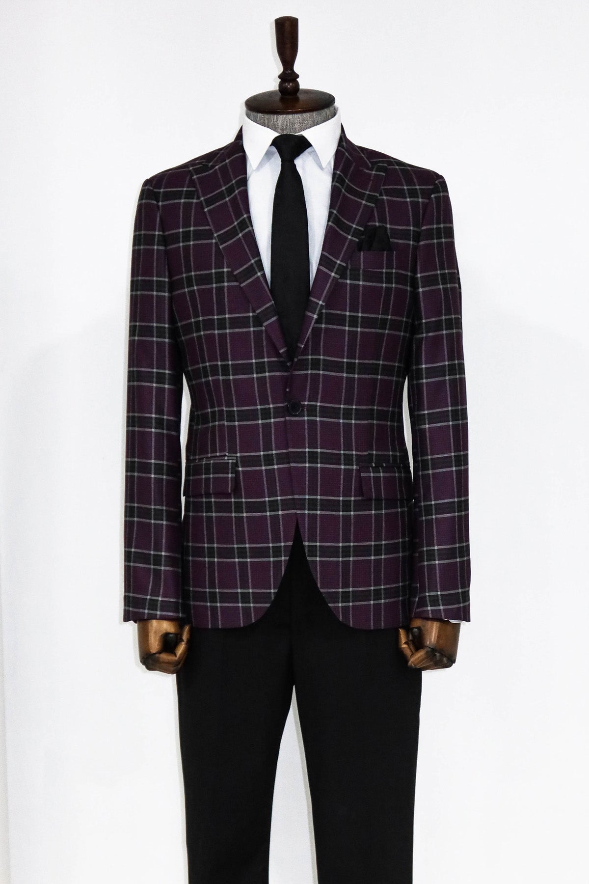 Slim Fit Peak Lapel Purple Men...