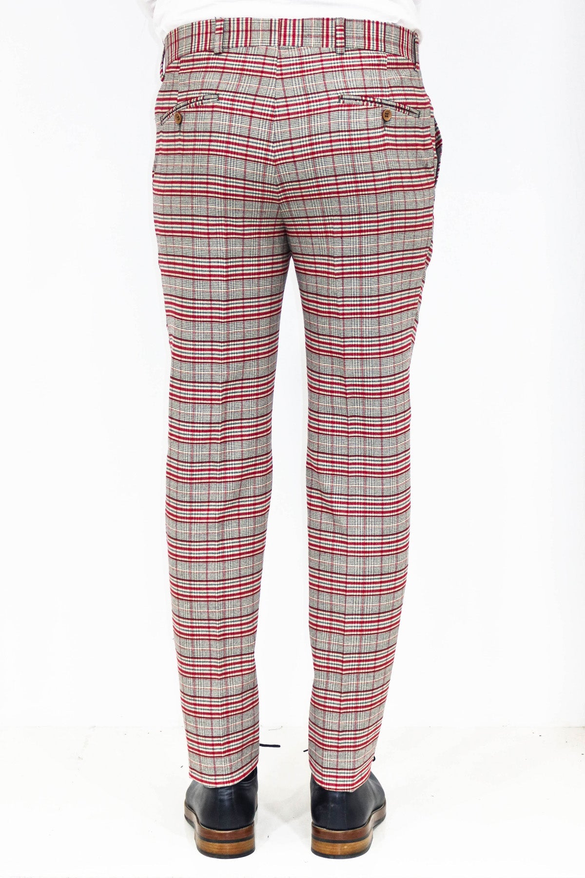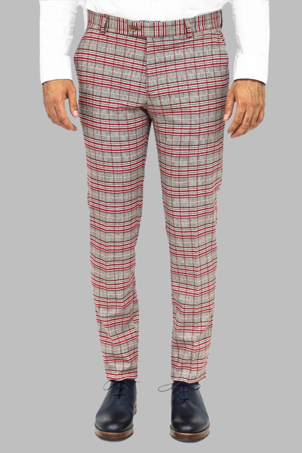 Slim Fit Plaid Grey Men Pants