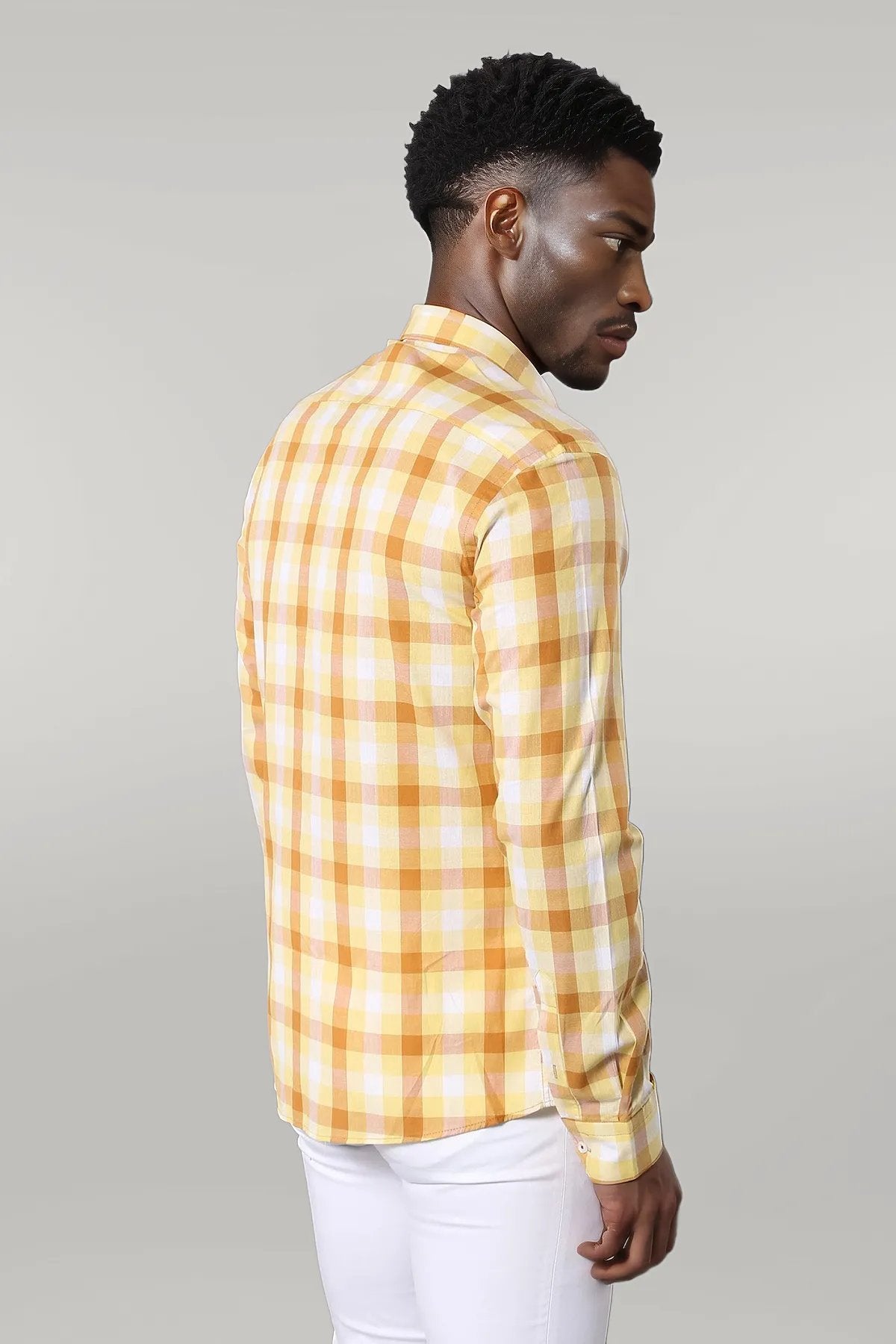 Slim Fit Plaid Patterned Yellow Shirt