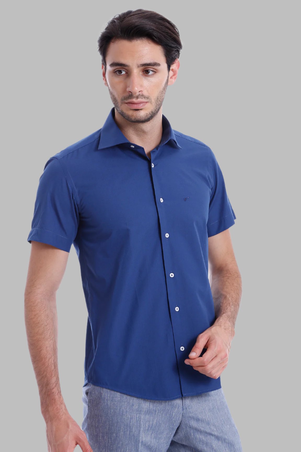 Slim Fit Short Sleeve Poly Cotton Navy Blue Men Shirt