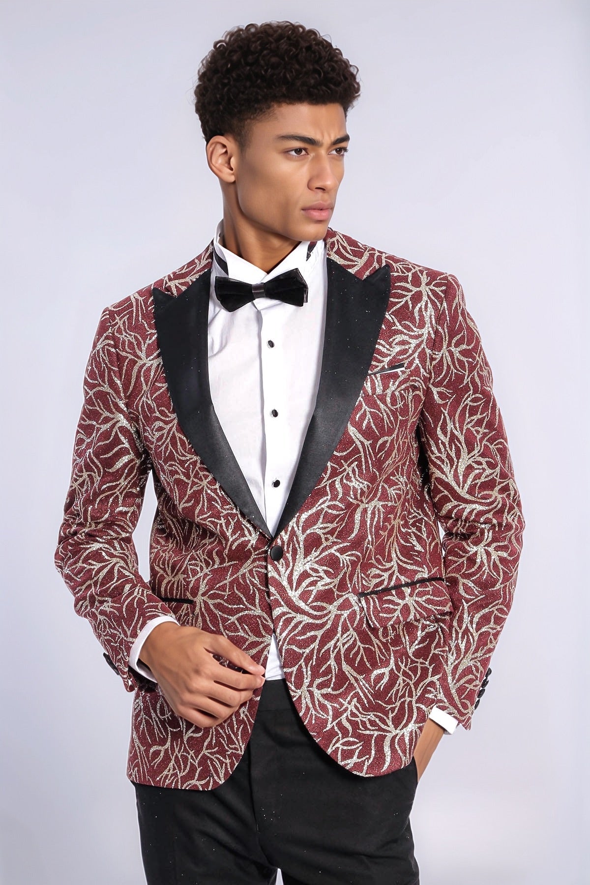Sparkling Ivy Patterned Slim Fit Burgundy...