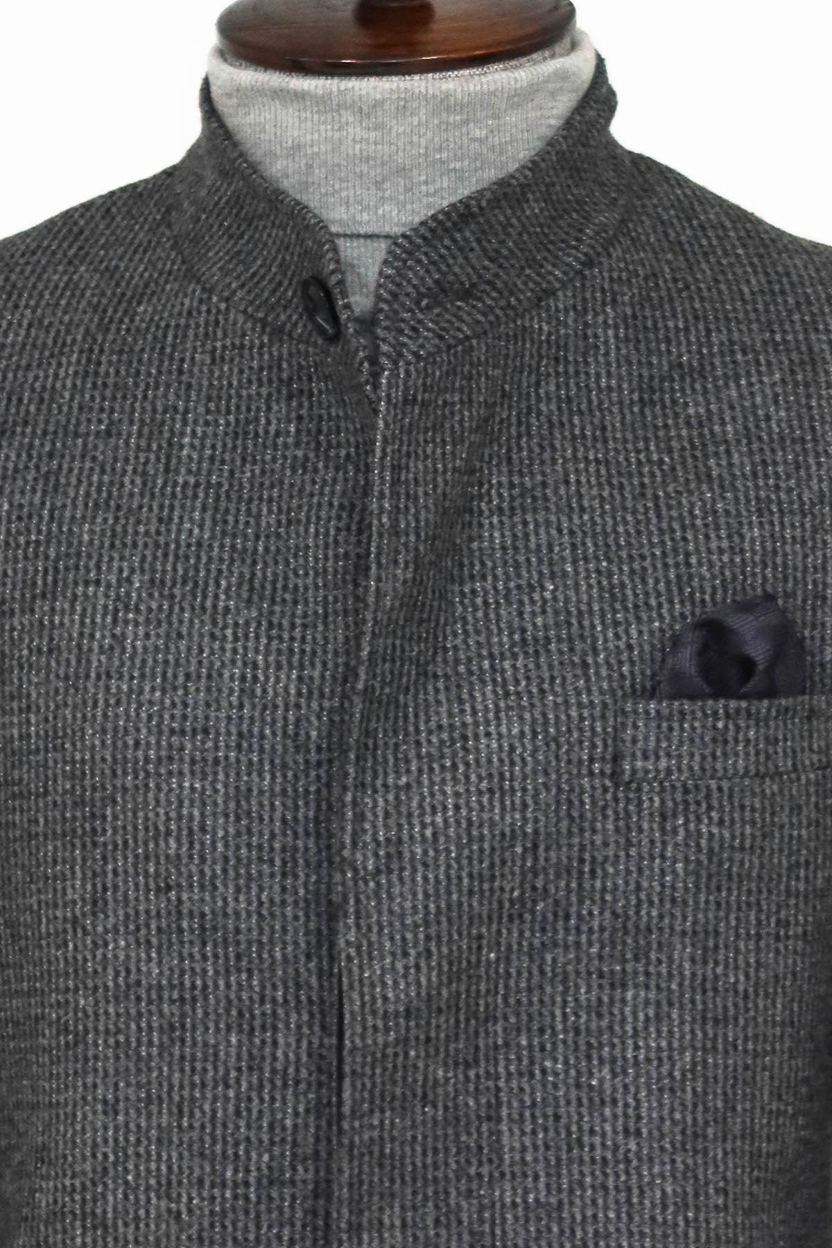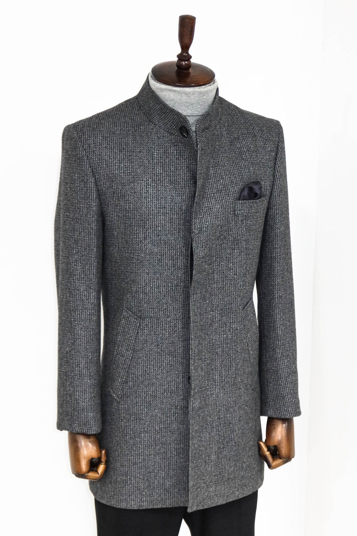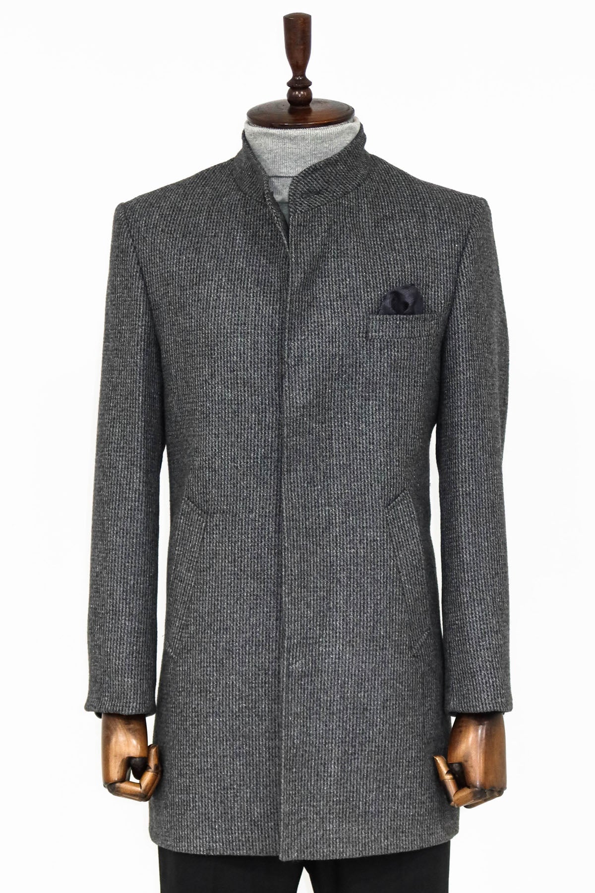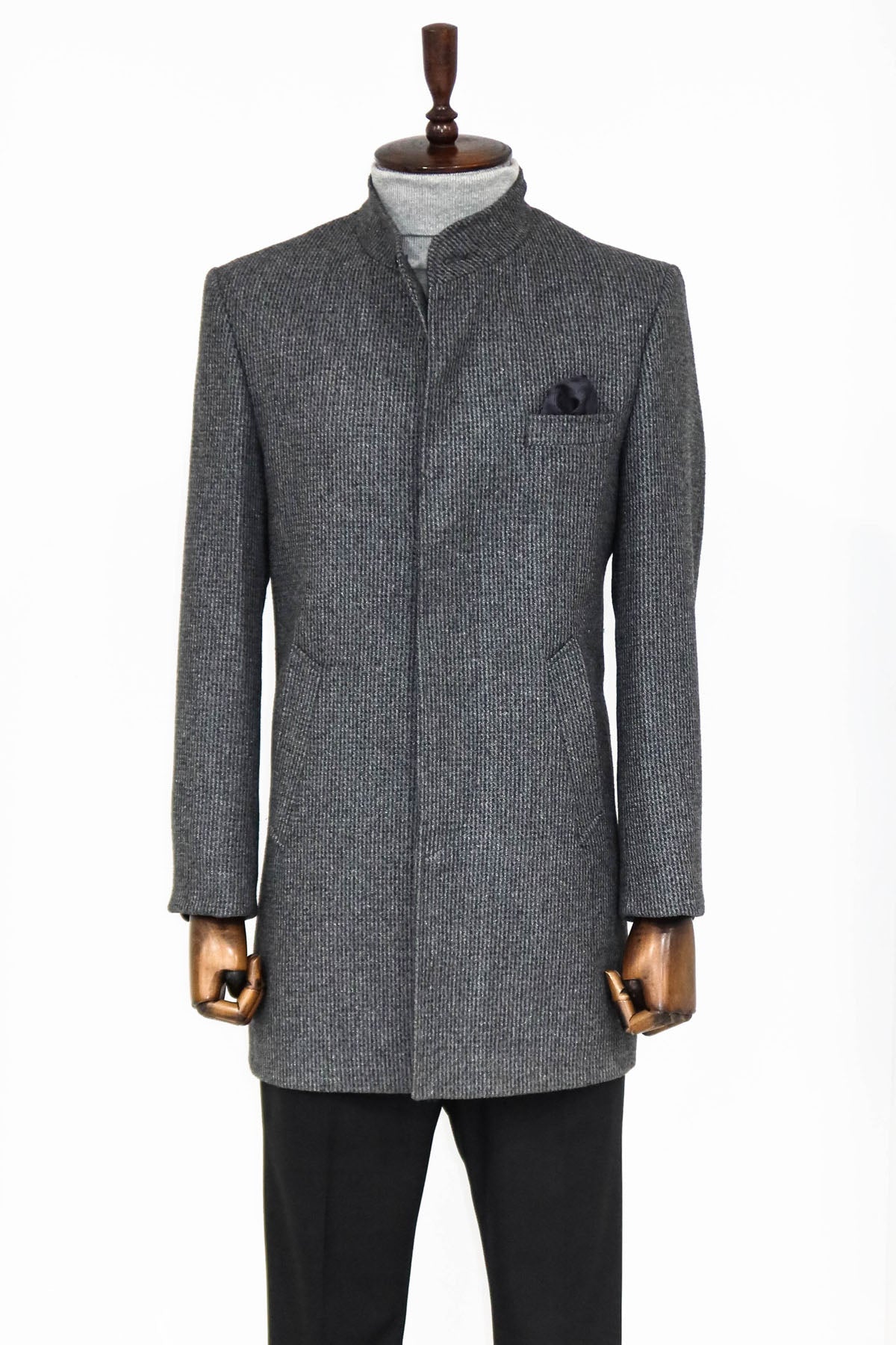 Standing Collar Patterned Grey Men Coat