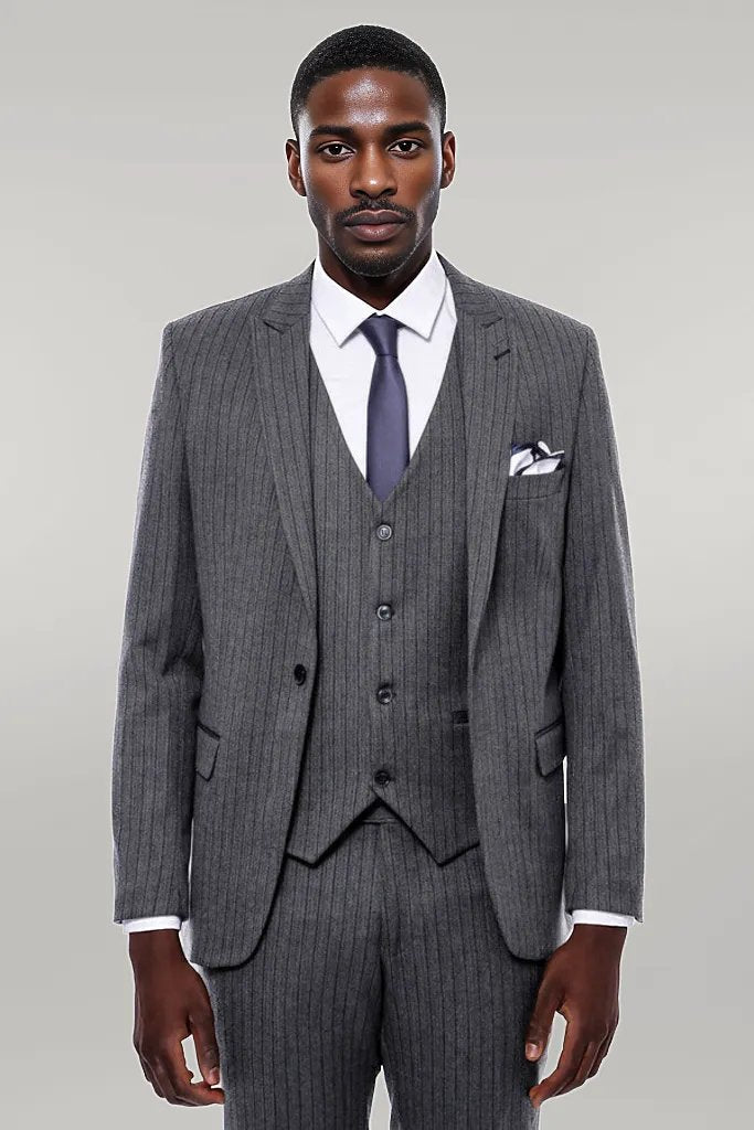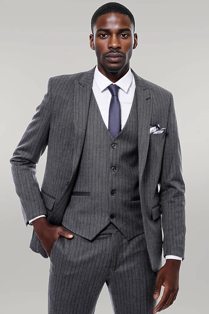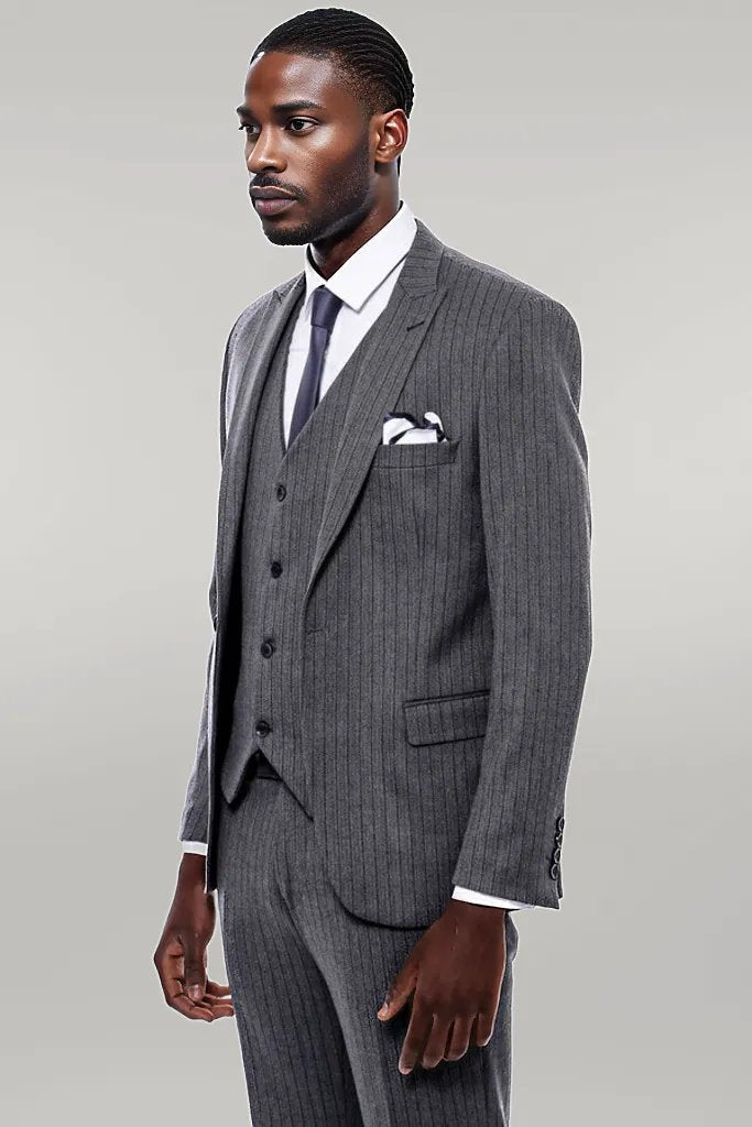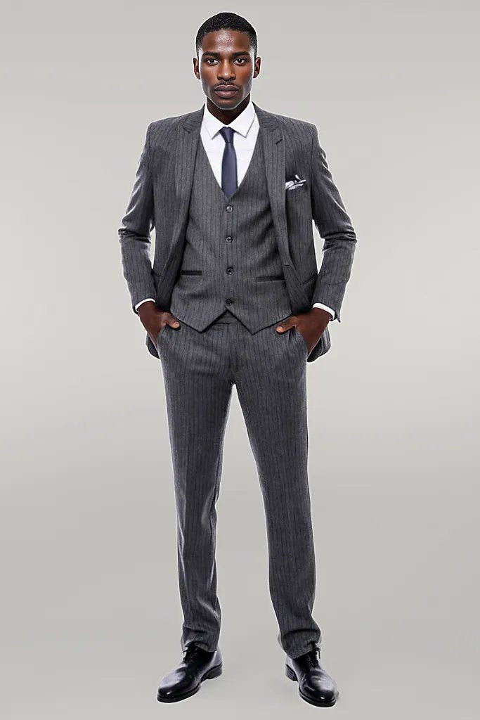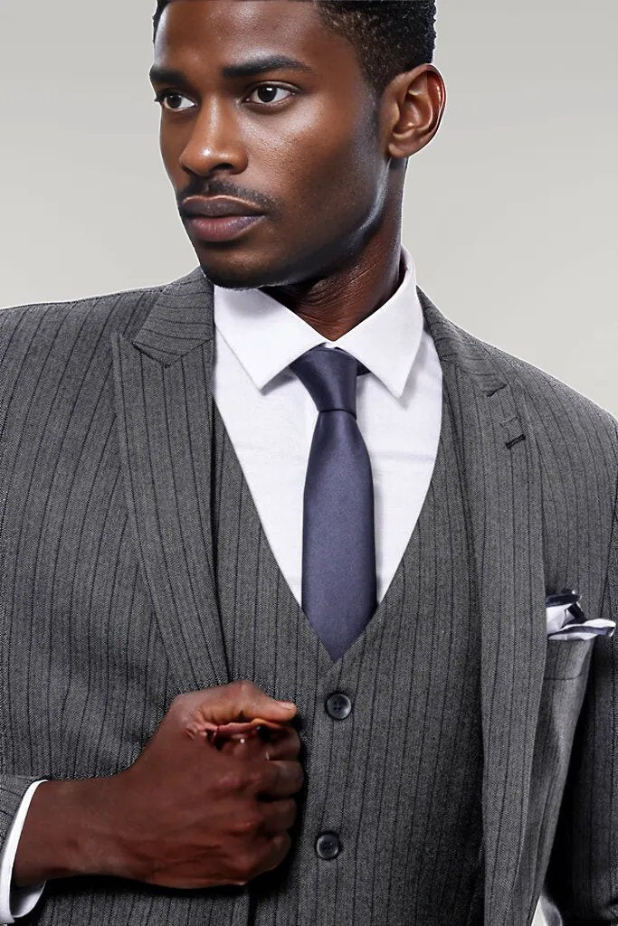 Striped Navy Blue Vested Suit -