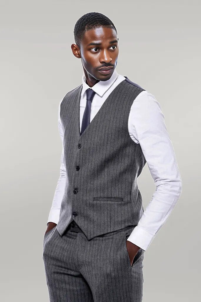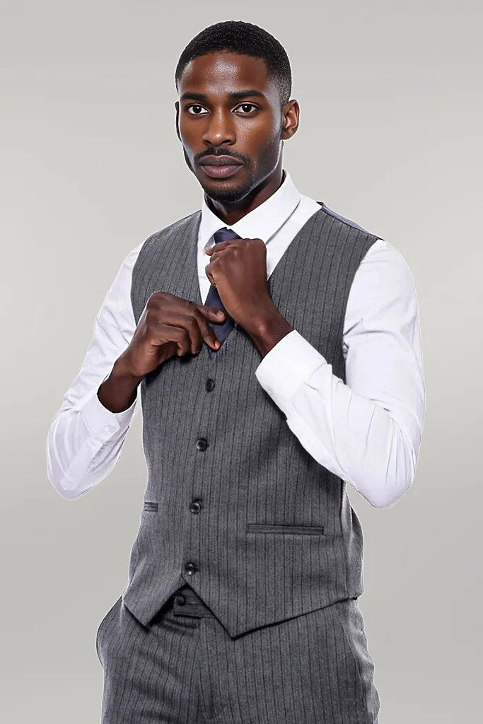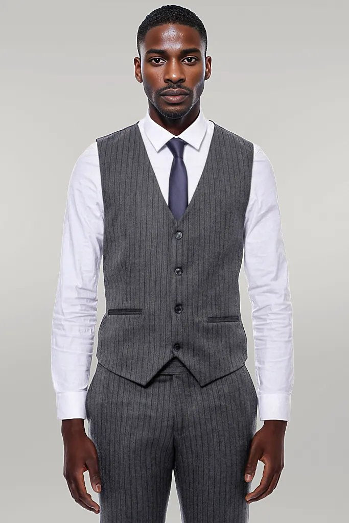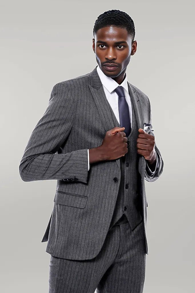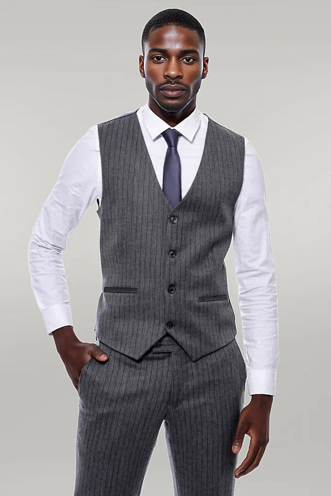 Striped Navy Blue Vested Suit -