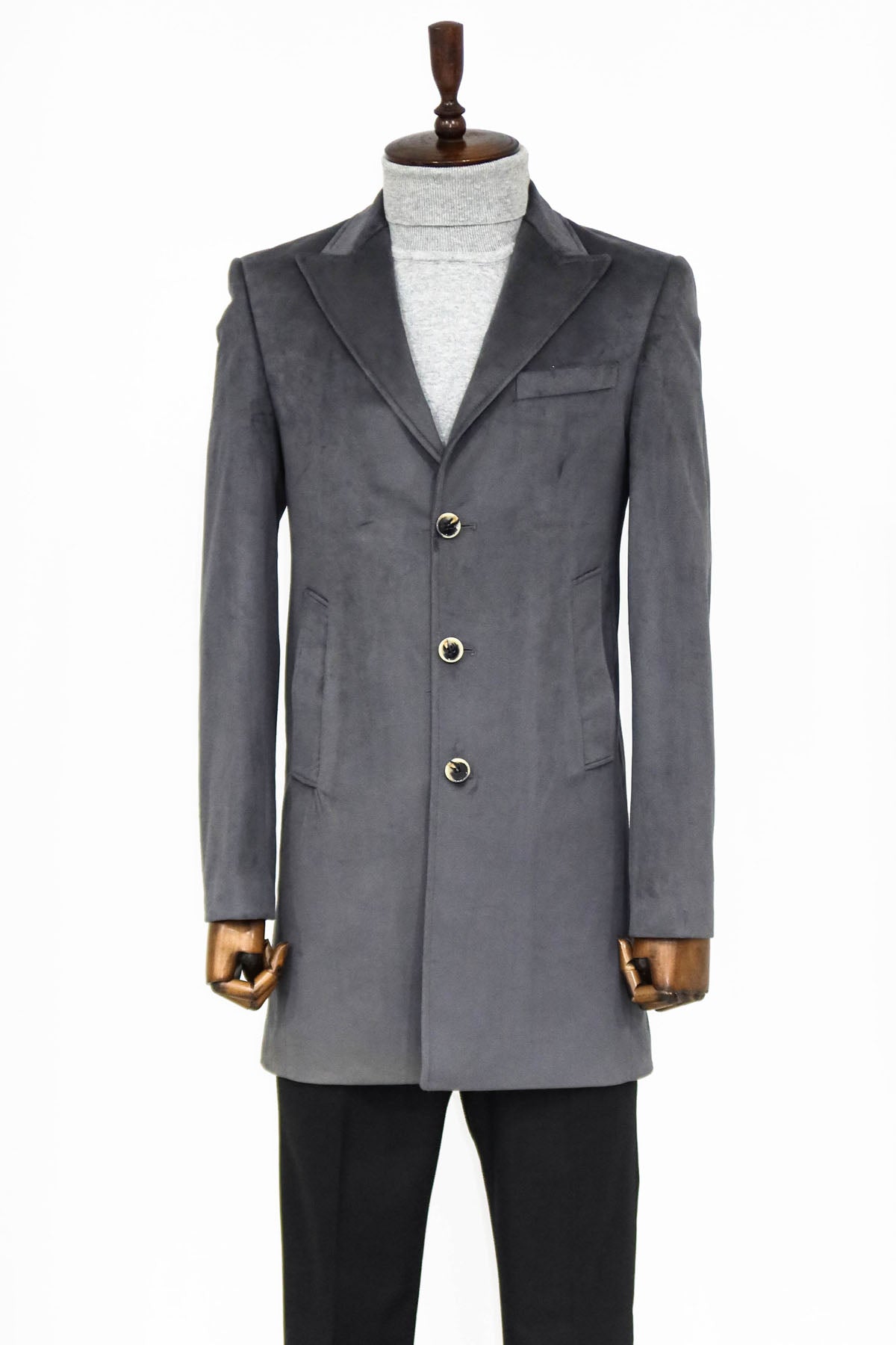 Suede Slim Fit Long Grey Men...