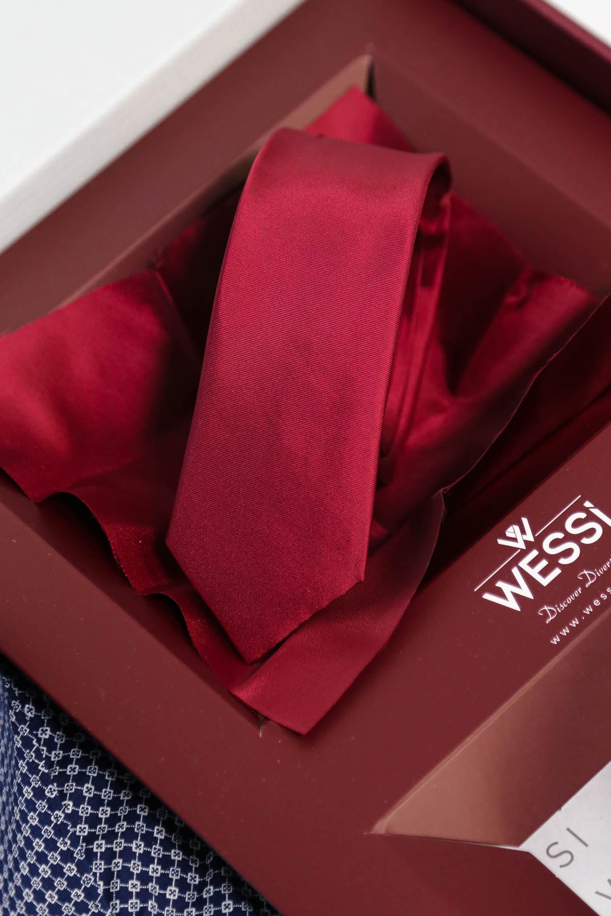 • A deep burgundy tie that provides rich contrast and a pop of sophisticated color.