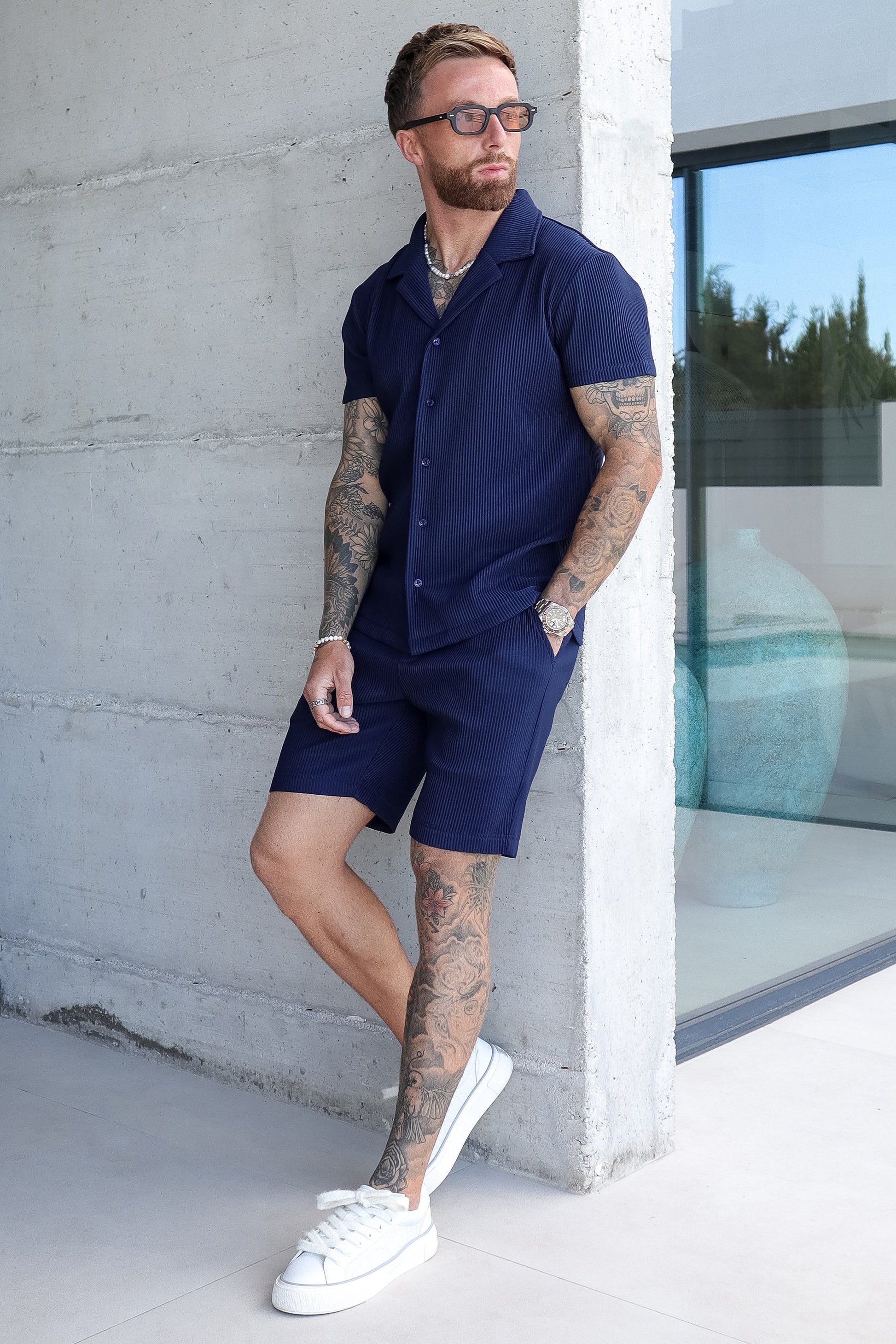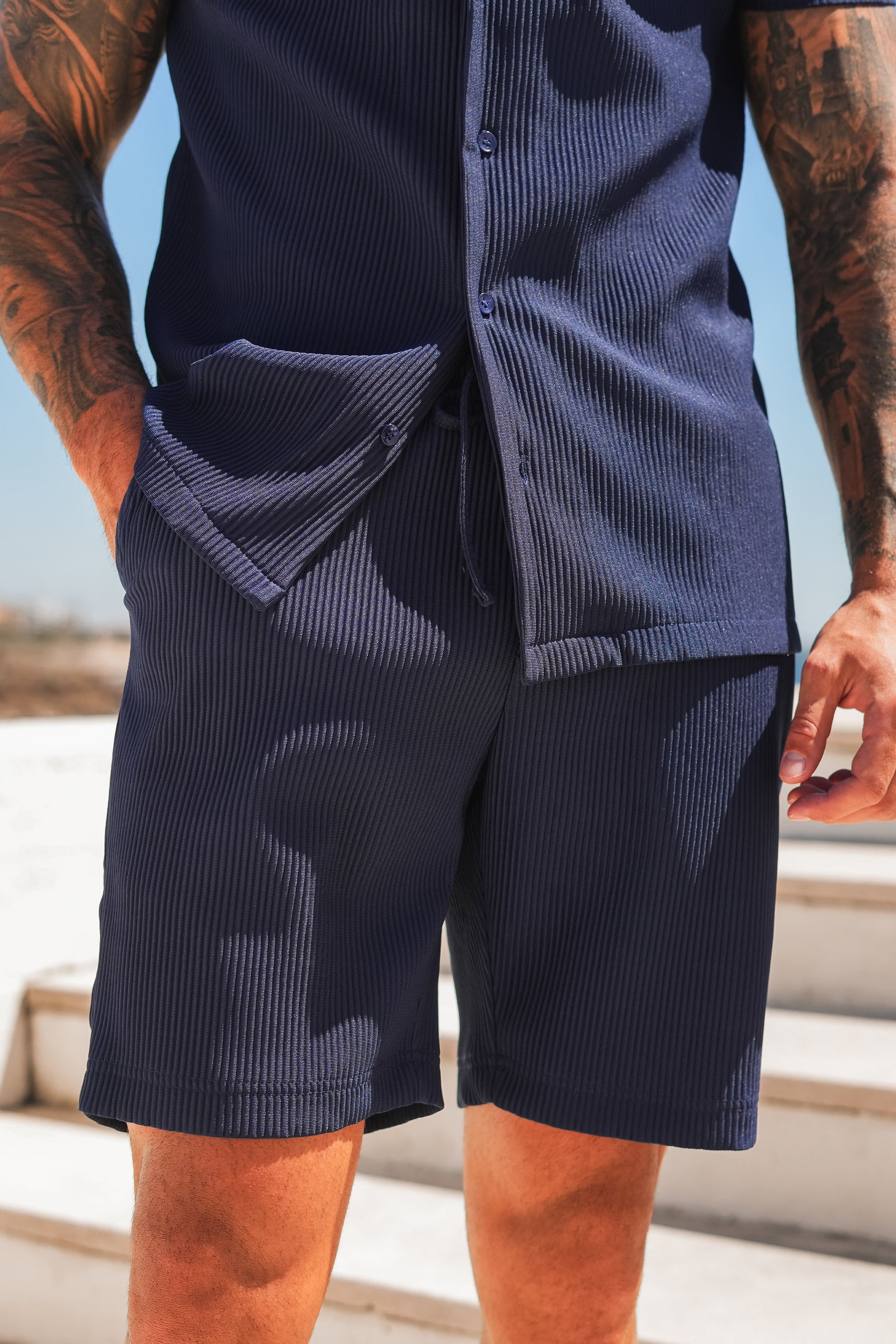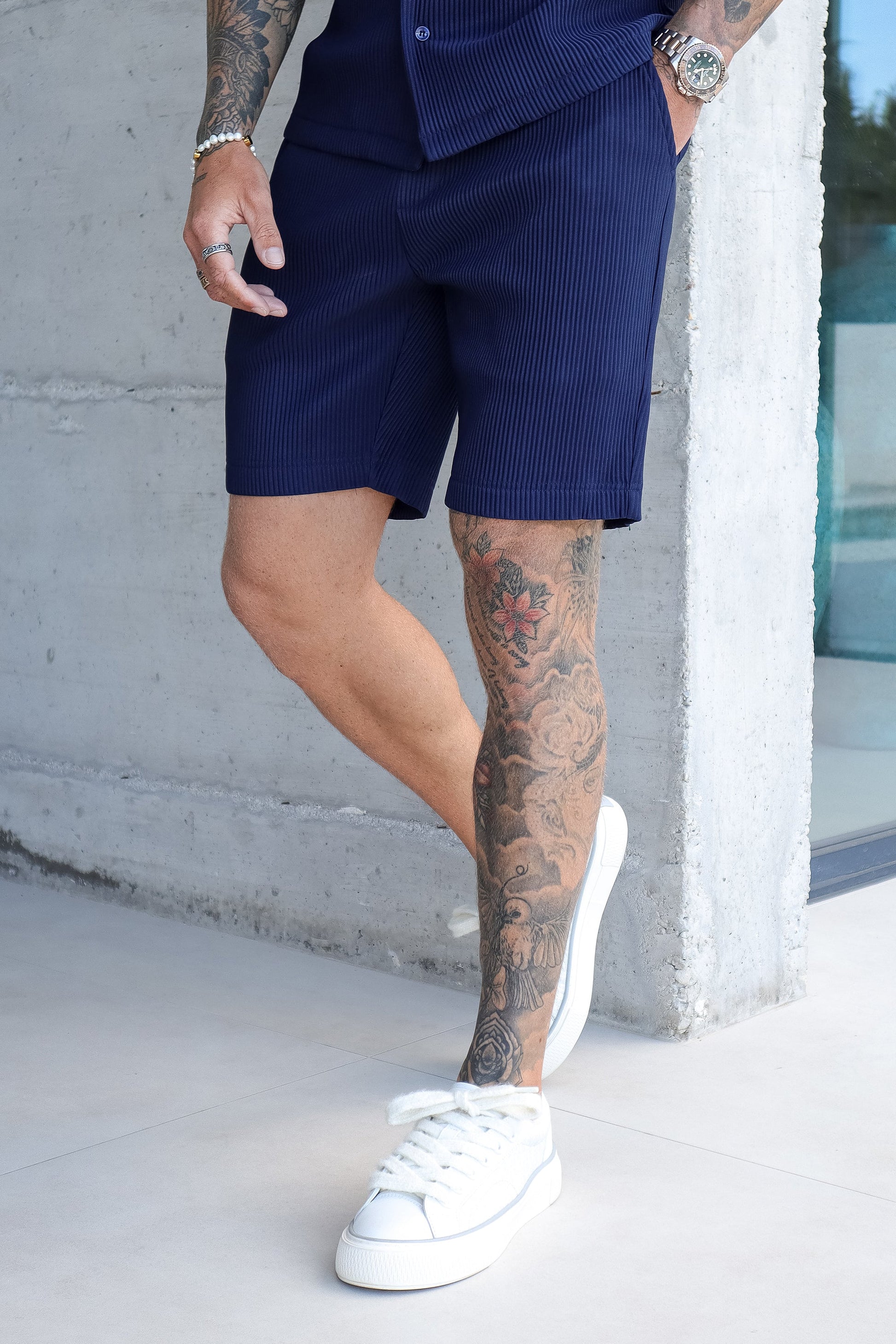 THE SLIM PLEATED SHORTS - NAVY...