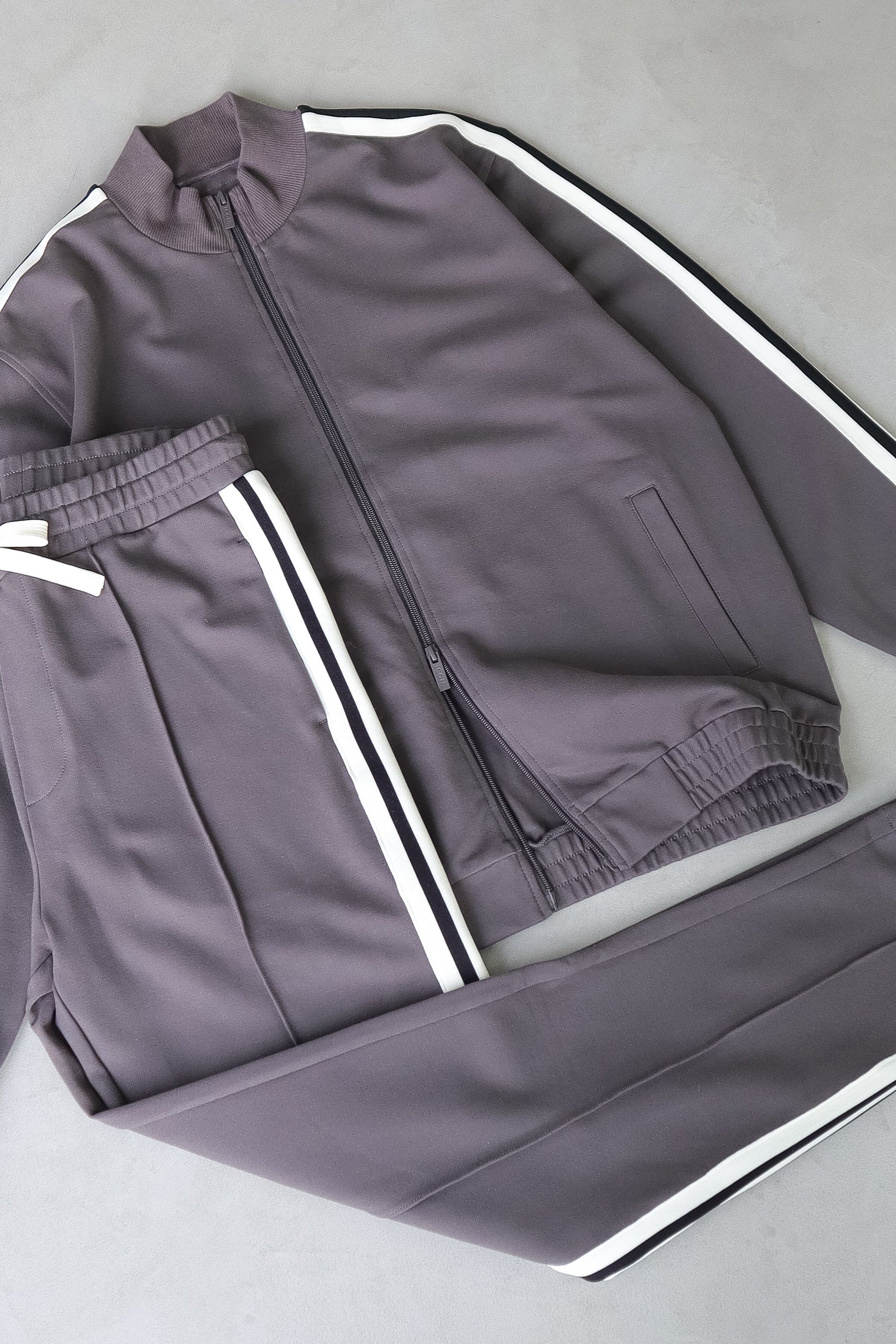 Featuring signature tape detailing, it effortlessly combines a laid-back vibe with a refined edge. Whether you're relaxing at home or stepping out, this jacket is designed to move with you. For a complete look, pair it with the matching trousers and enjoy a tracksuit that feels as good as it looks!