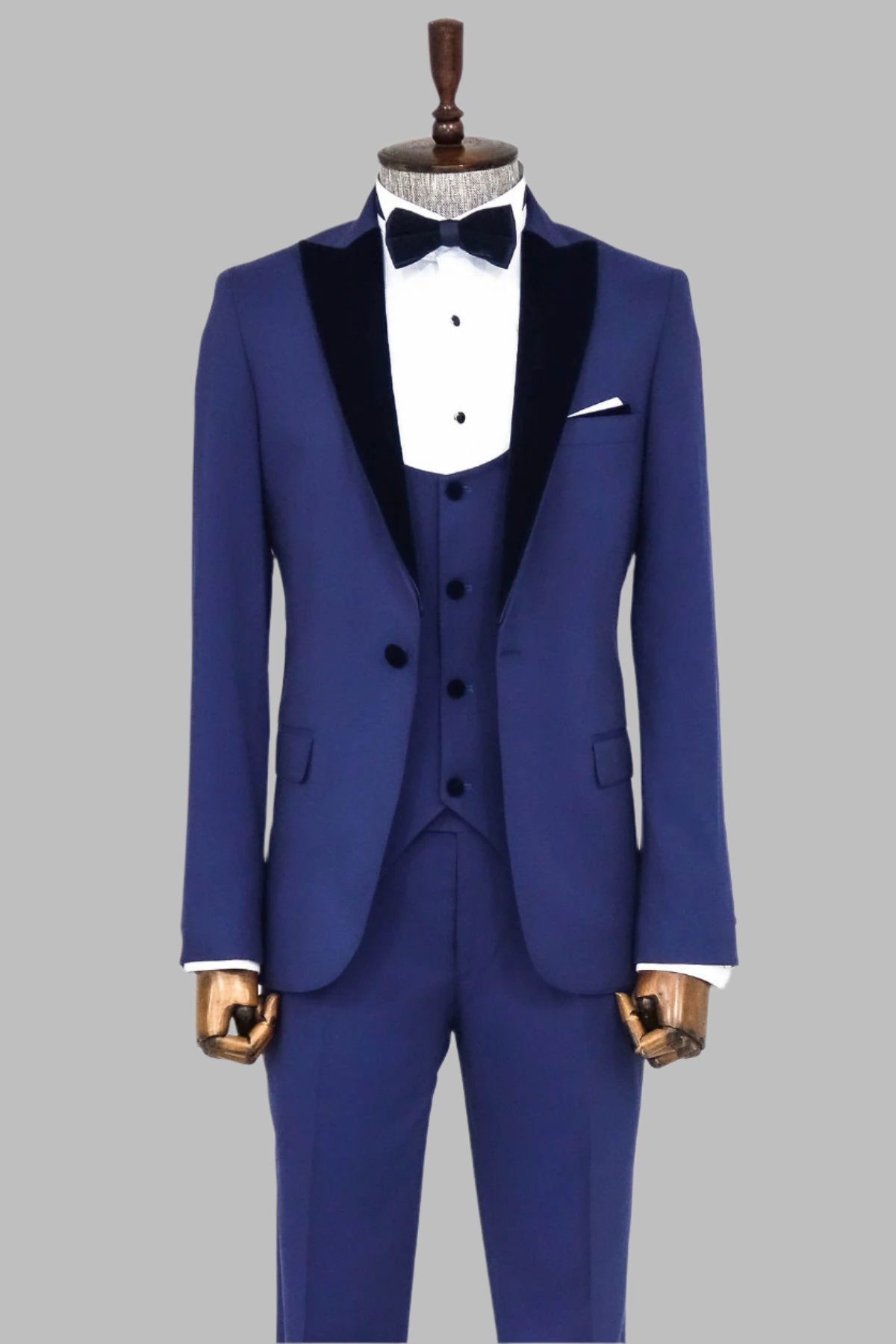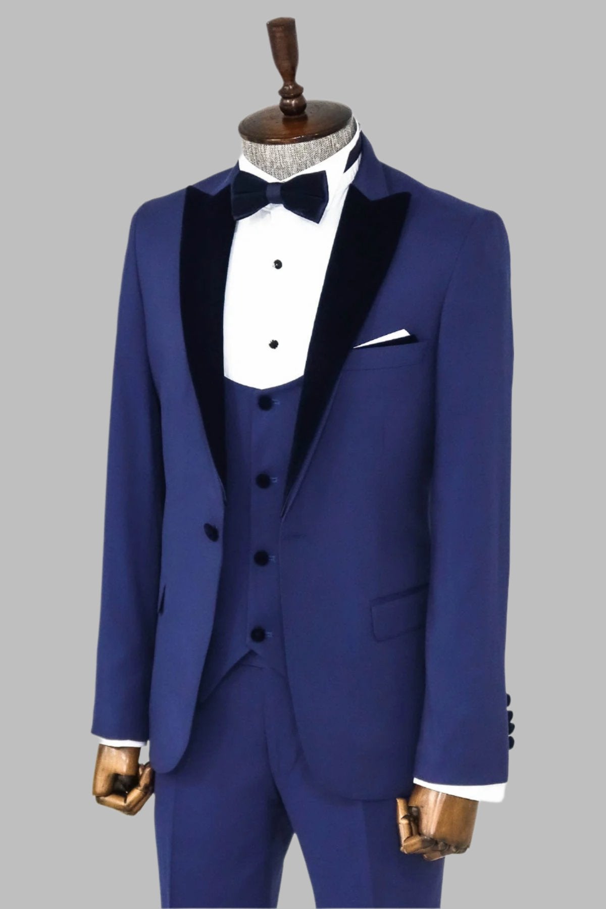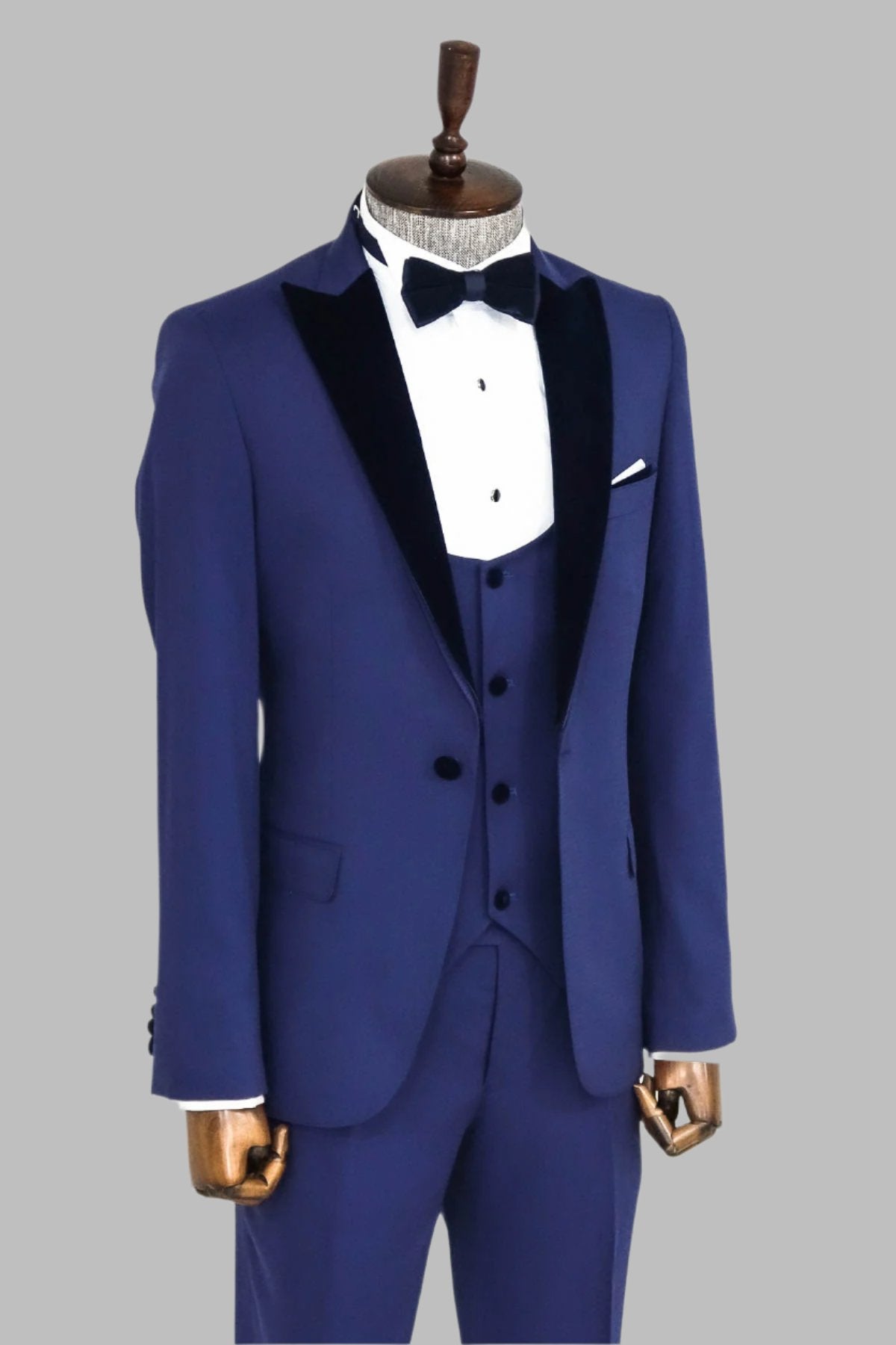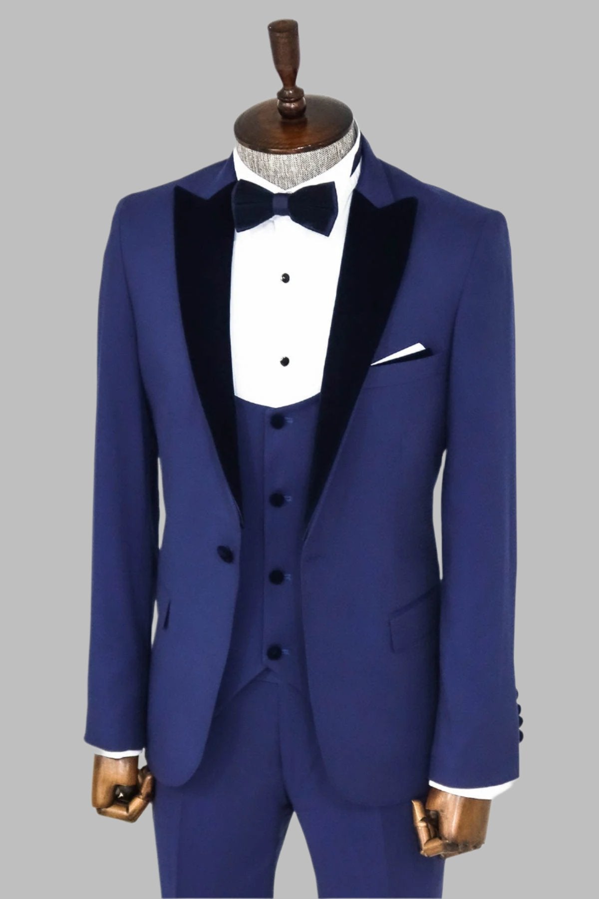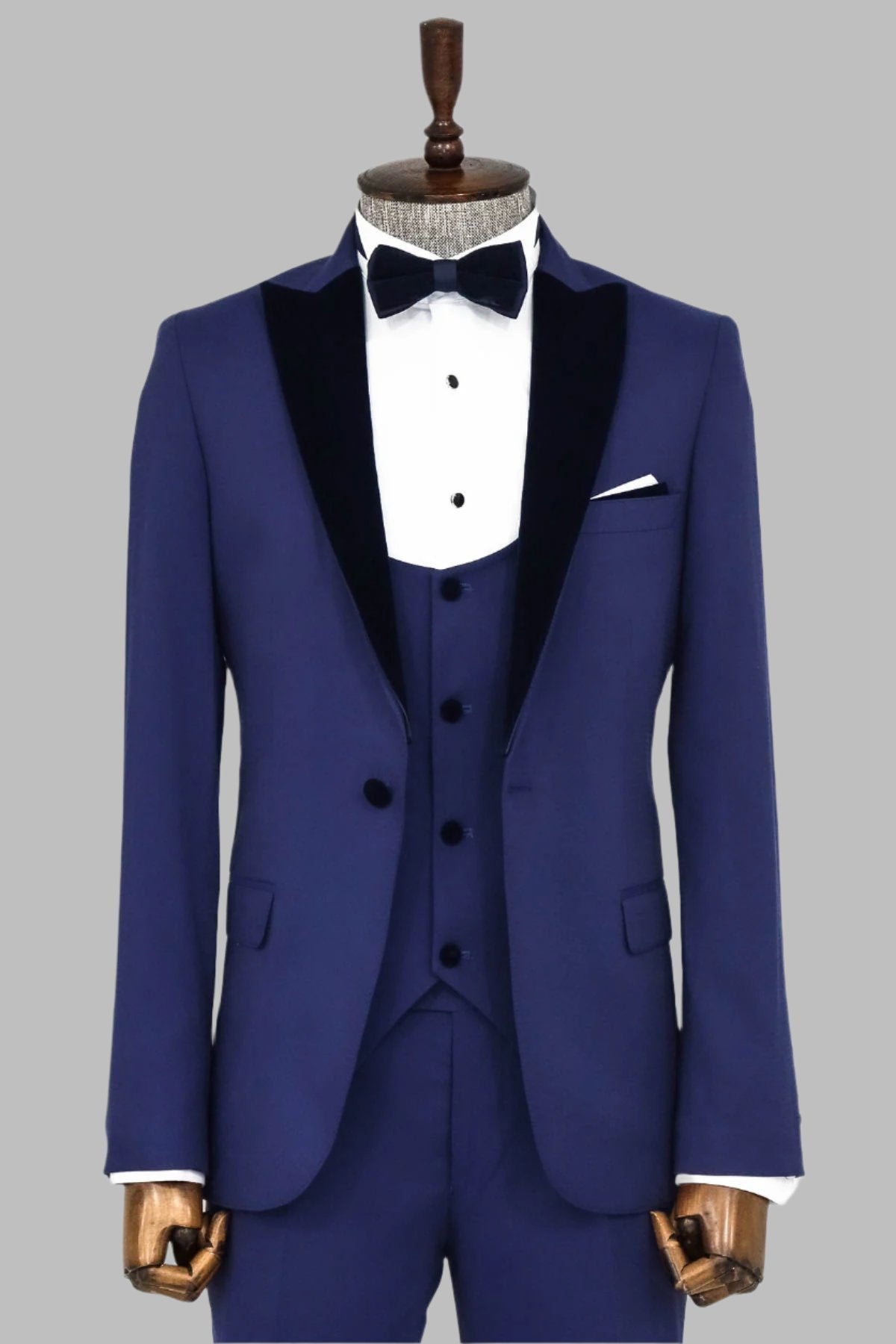 Velvet Lapel Slim Fit Blue Men...