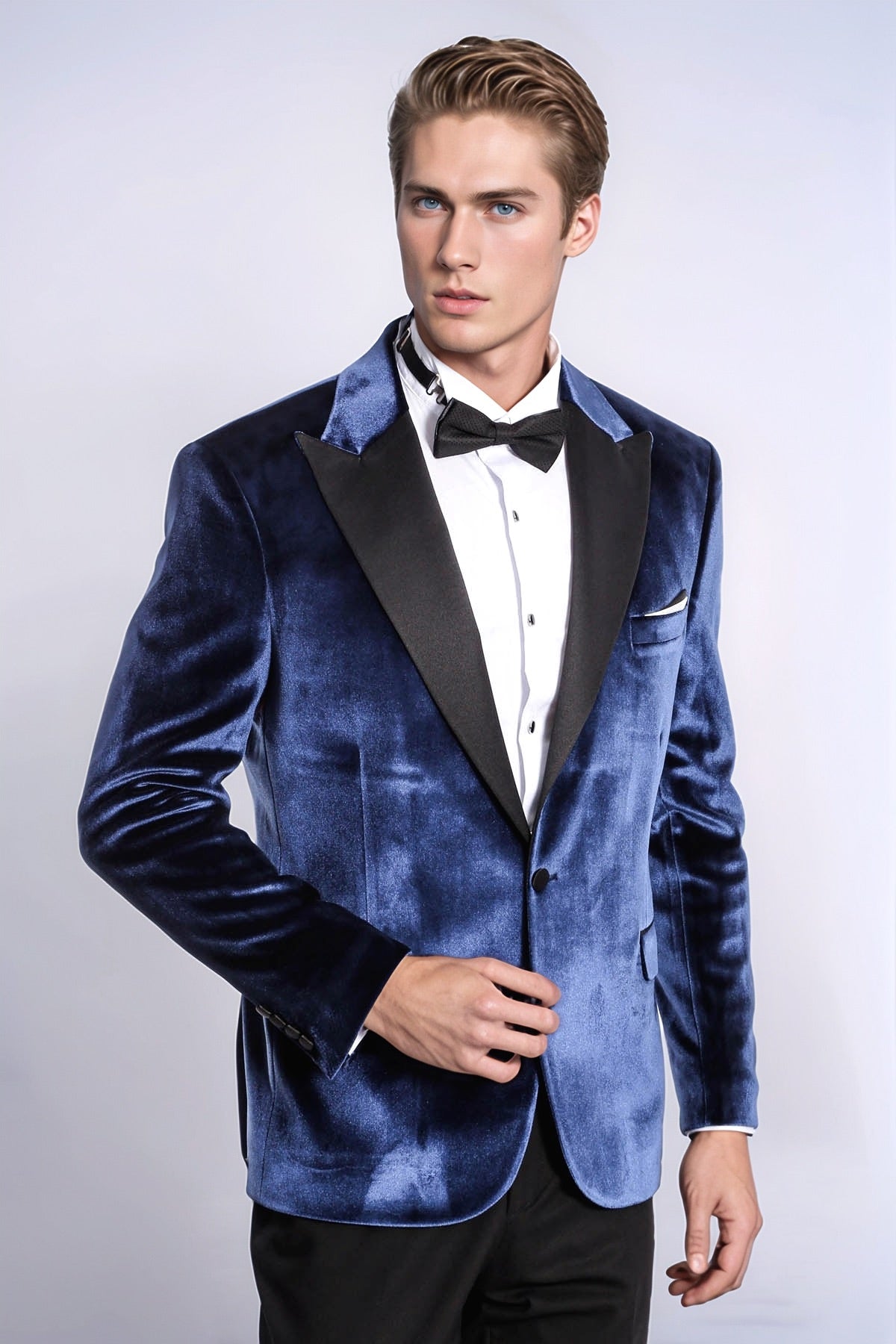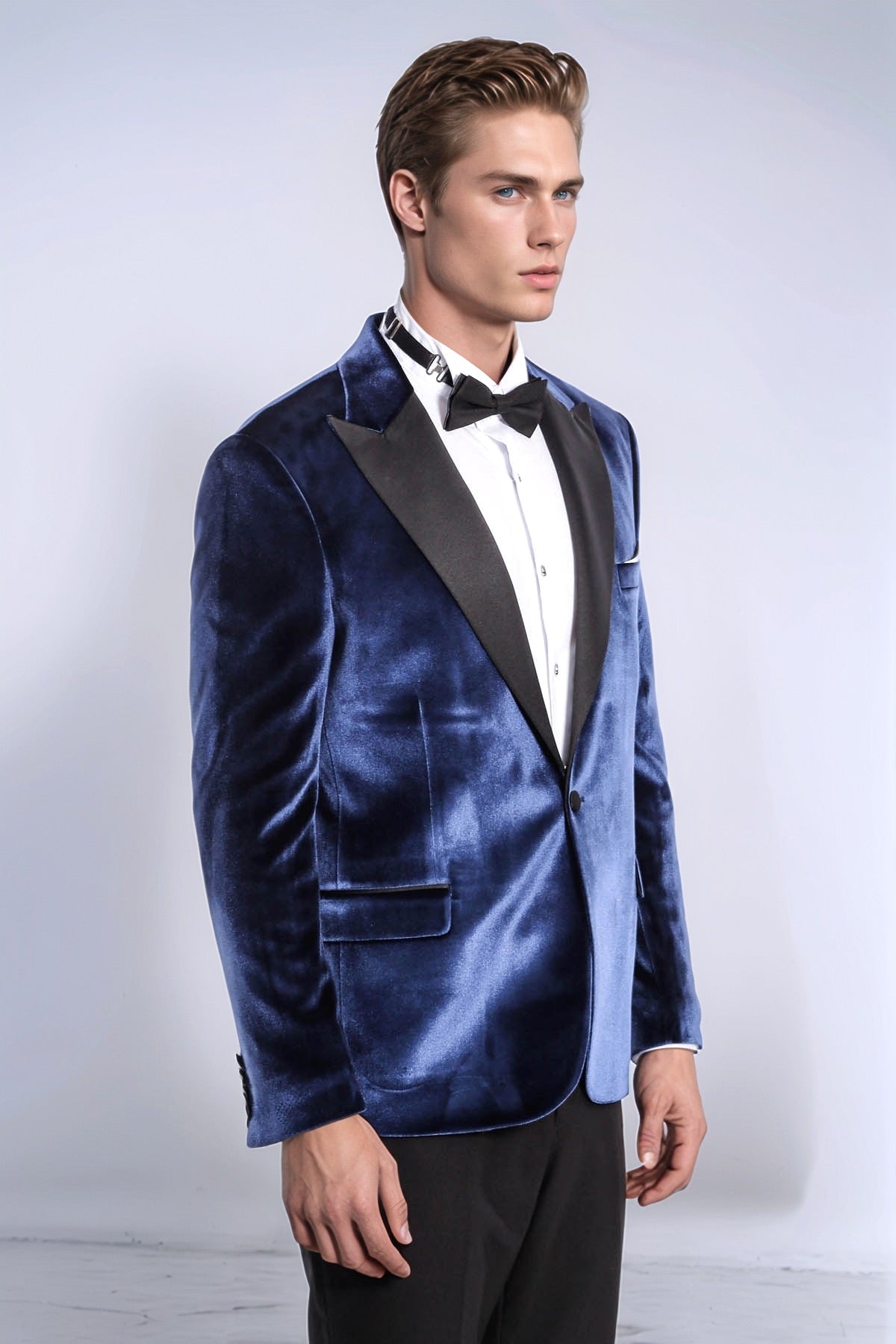Velvet Slim Fit Blue Men Tuxedo...