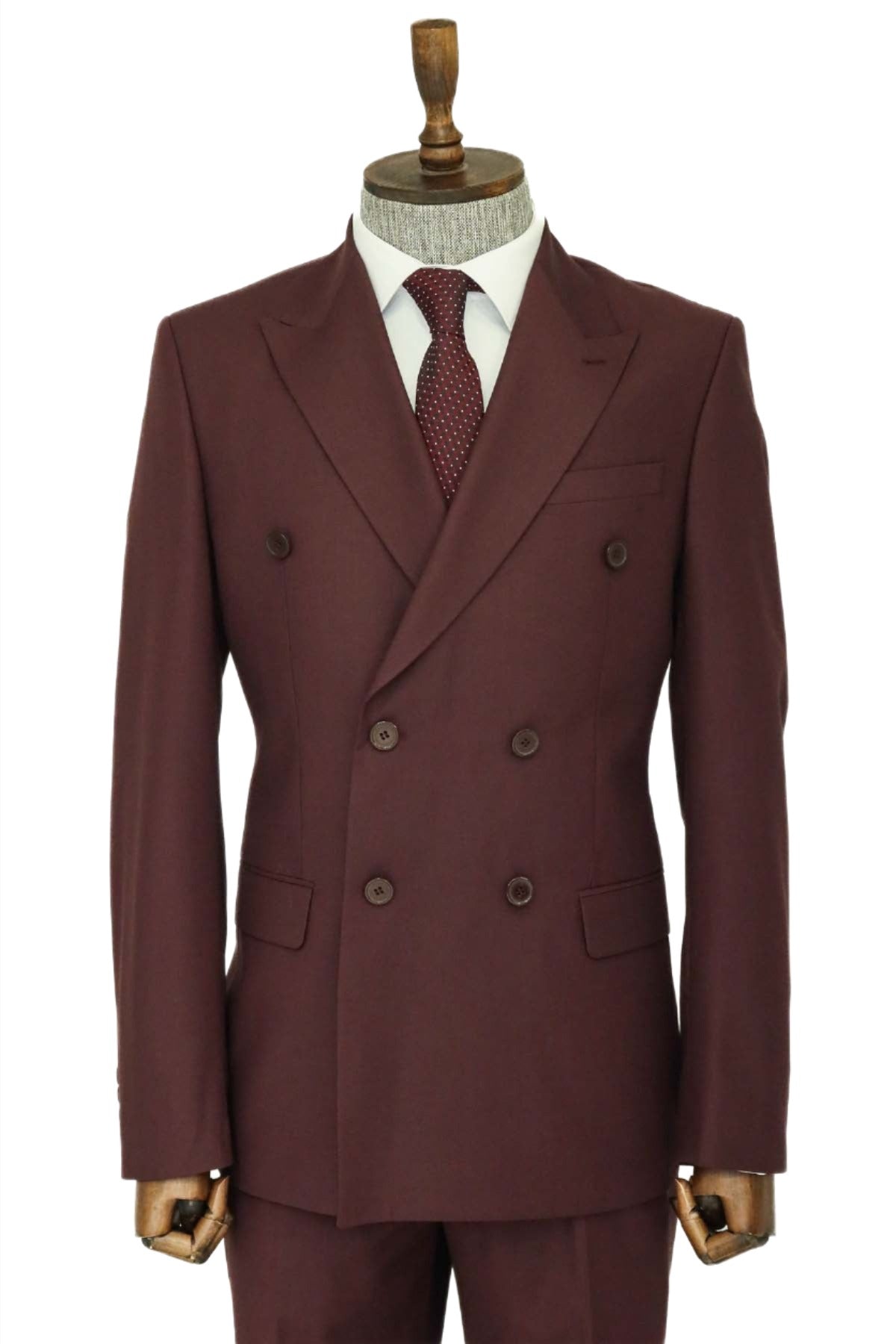 Wide Peak Collar Slim Fit Burgundy...