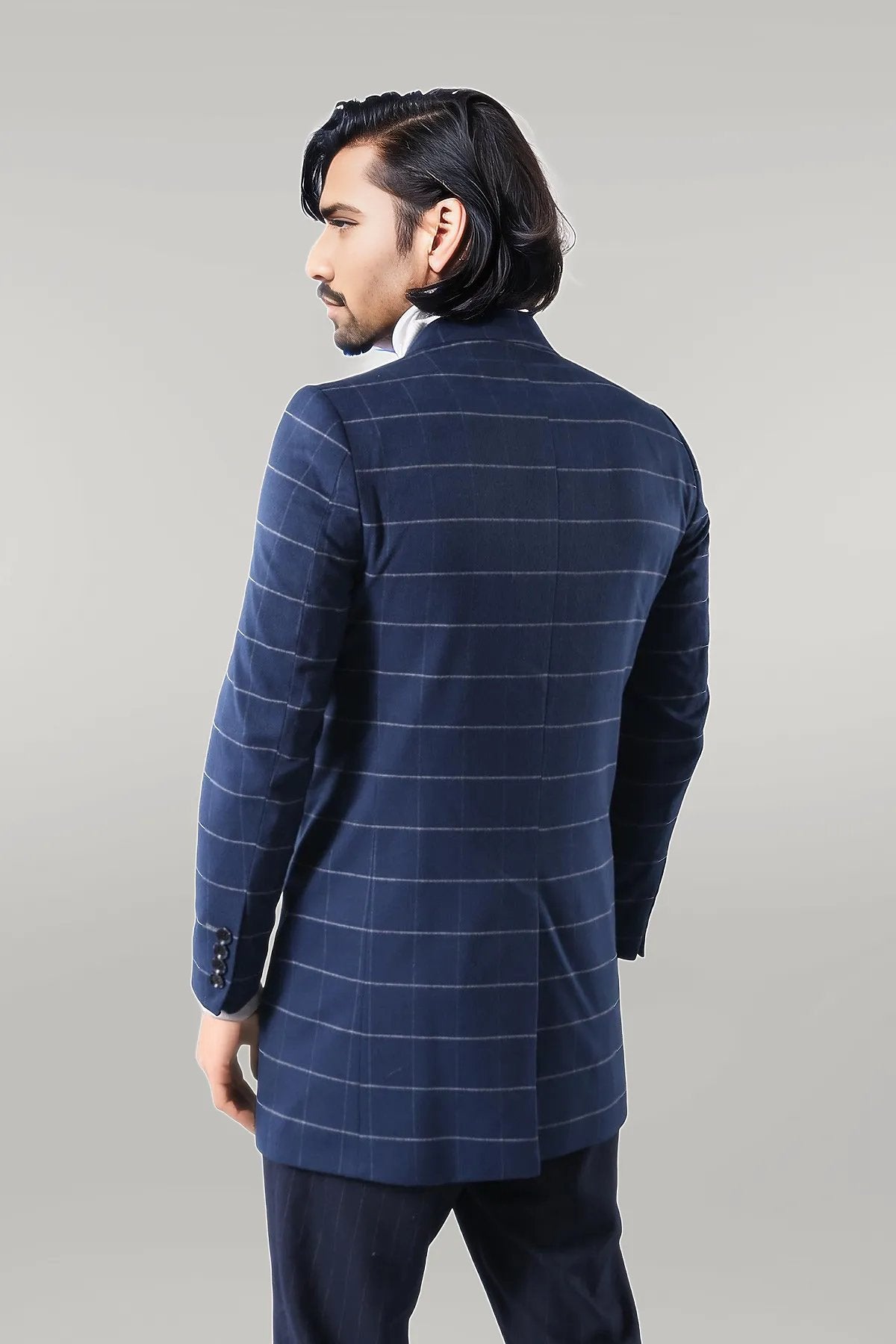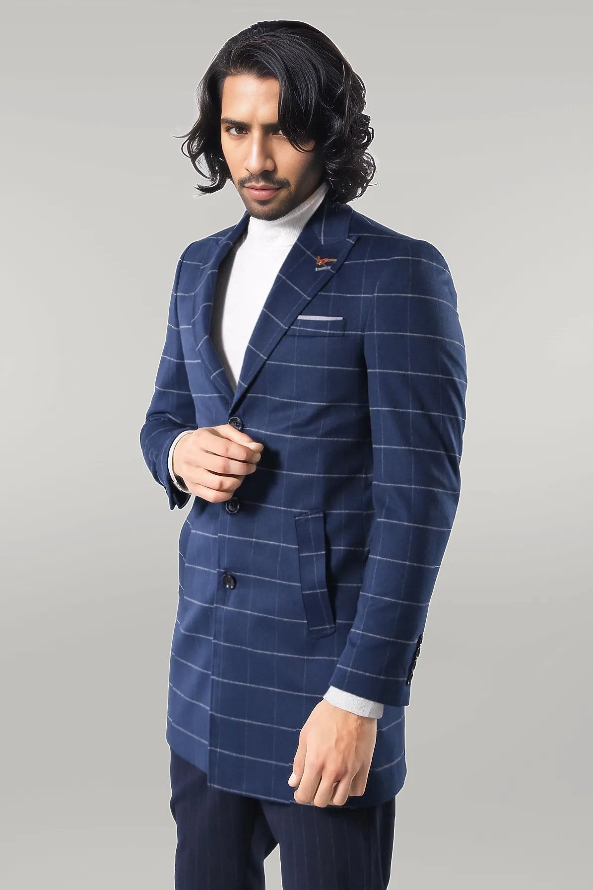 Wide Pointed Collar Indigo Men Coat